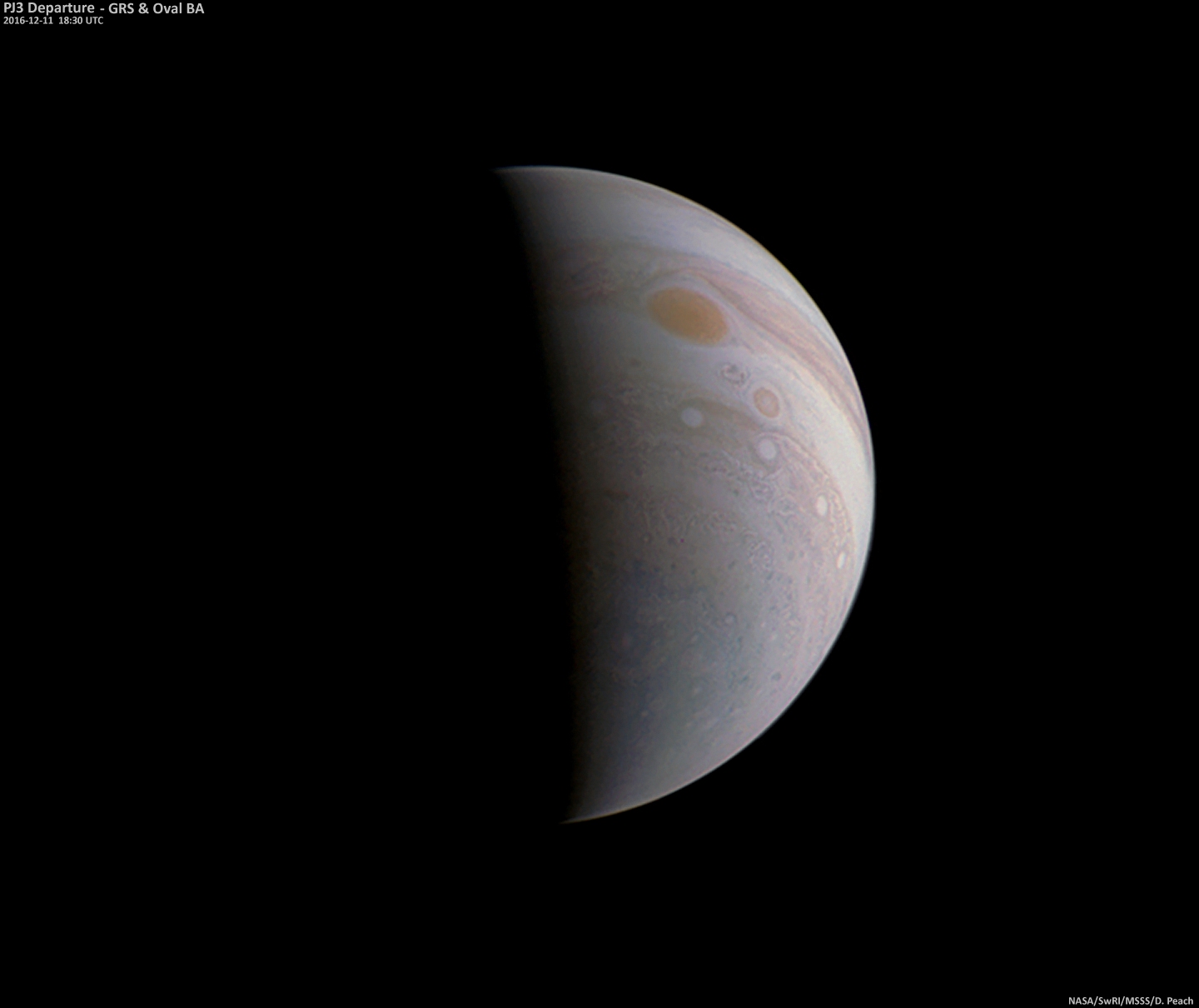 Perijove 3 - Departure shot with GRS & Oval BA