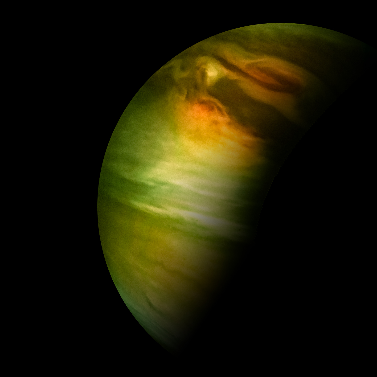 Junocam pixels are 12 bits deep from the camera but are converted to 8 bits inside the instrument using a lossless "companding" table, a process similar to gamma correction, to reduce their size. All Junocam products on the missionjuno website are in this 8-bit form as received on Earth. Scientific users interested in radiometric analysis should use the "RDR" data products archived with the Planetary Data System, which have been converted back to a linear 12-bit scale.