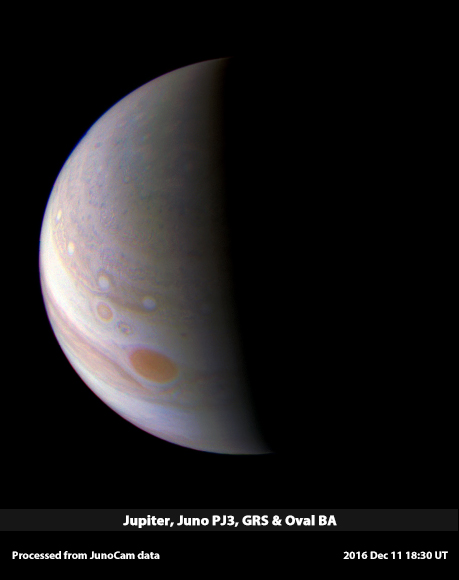 Processed from JunoCam data set captured 2016-12-11 18:30UT
