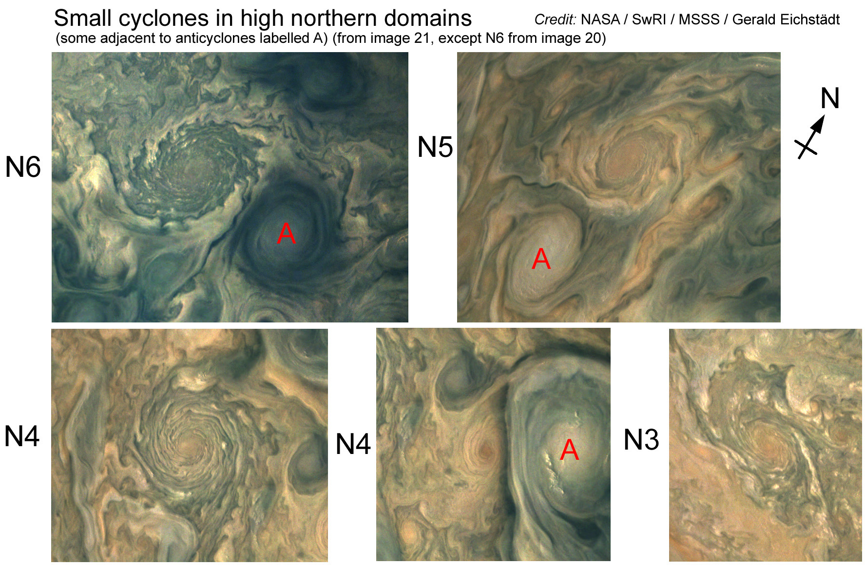 Here are some beautiful little cyclones in the high northern domains, from Gerald's versions of PJ15 images 20 and 21.