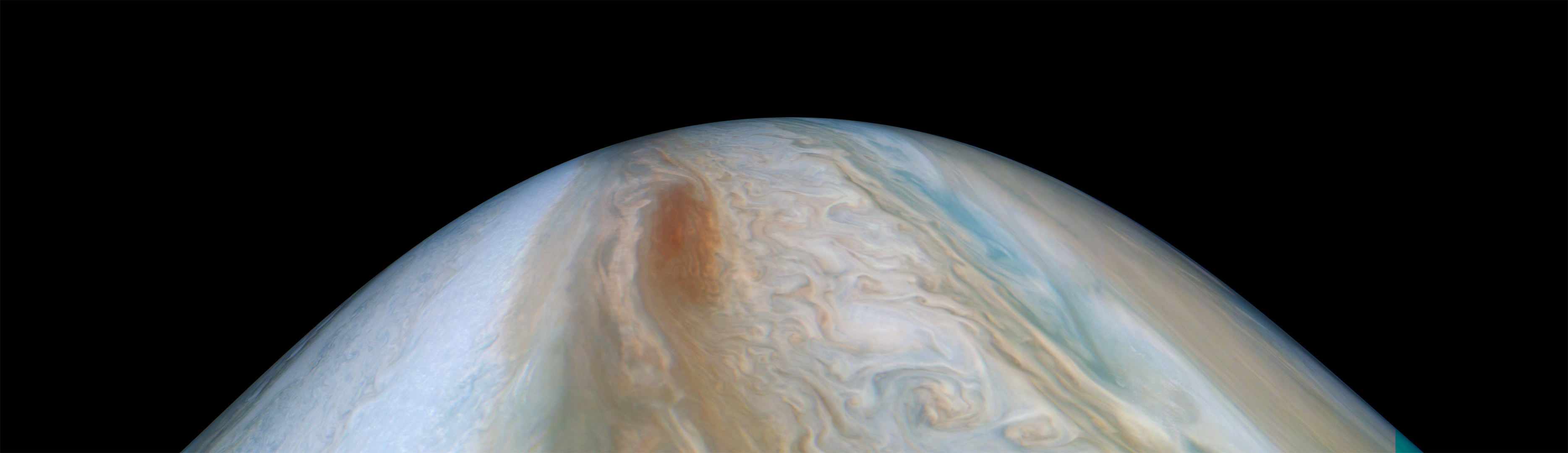 Junocam pixels are 12 bits deep from the camera but are converted to 8 bits inside the instrument using a lossless "companding" table, a process similar to gamma correction, to reduce their size. All Junocam products on the missionjuno website are in this 8-bit form as received on Earth. Scientific users interested in radiometric analysis should use the "RDR" data products archived with the Planetary Data System, which have been converted back to a linear 12-bit scale.