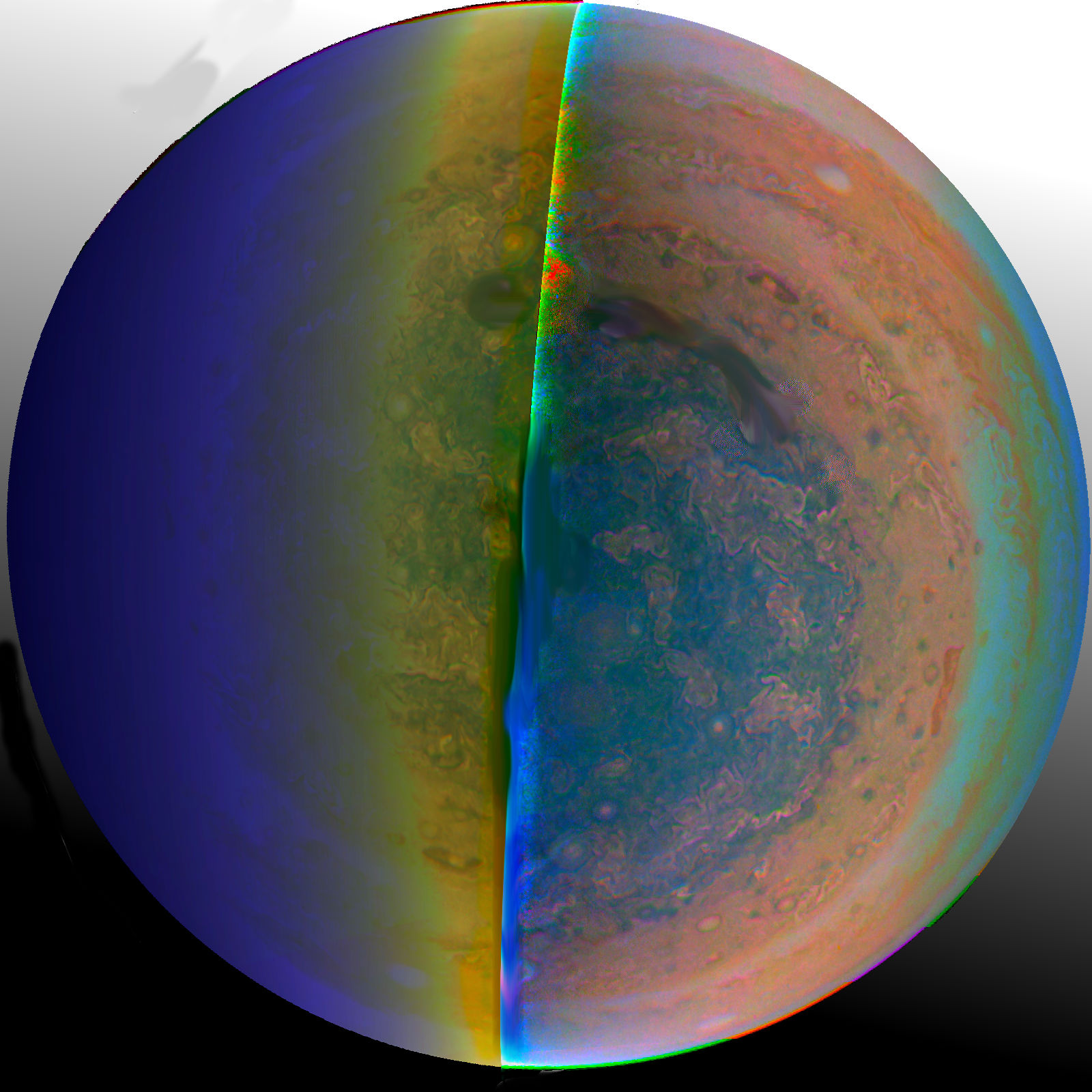 exposure) to try to detect Jupiter’s aurora. We imaged at two different geometries, looking directly down at the pole