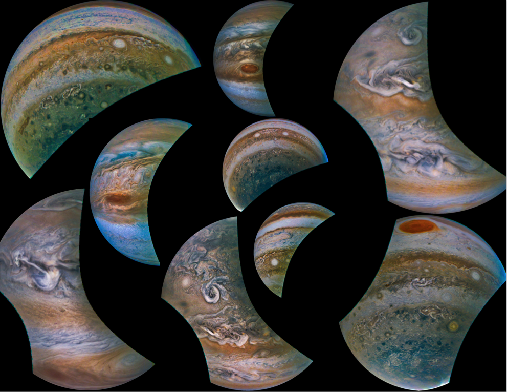 A special note about the Earth Flyby mission phase images: these were acquired in 2013 when Juno flew past Earth. Examples of processed images are shown; most contributions are from amateurs.