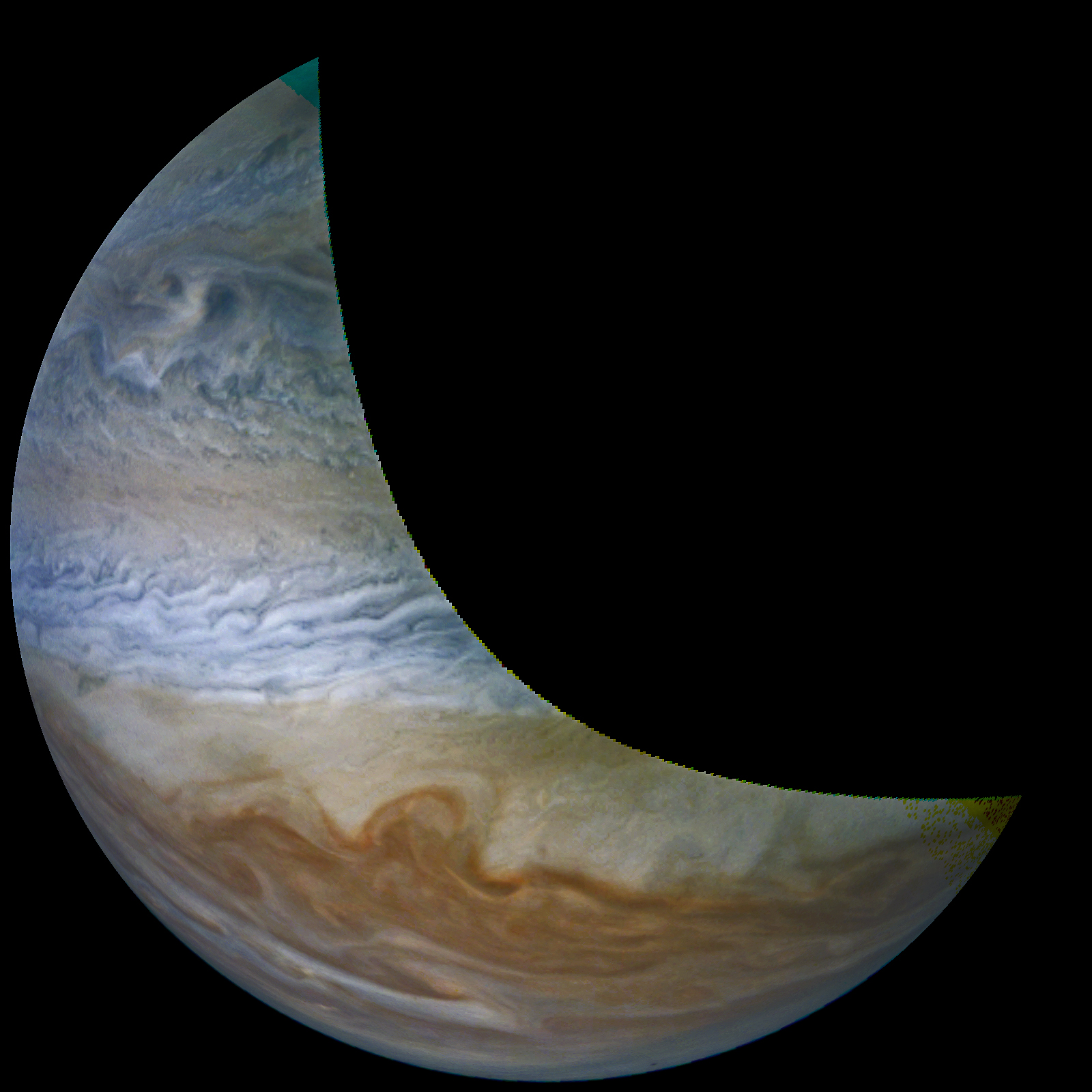 A special note about the Earth Flyby mission phase images: these were acquired in 2013 when Juno flew past Earth. Examples of processed images are shown; most contributions are from amateurs.