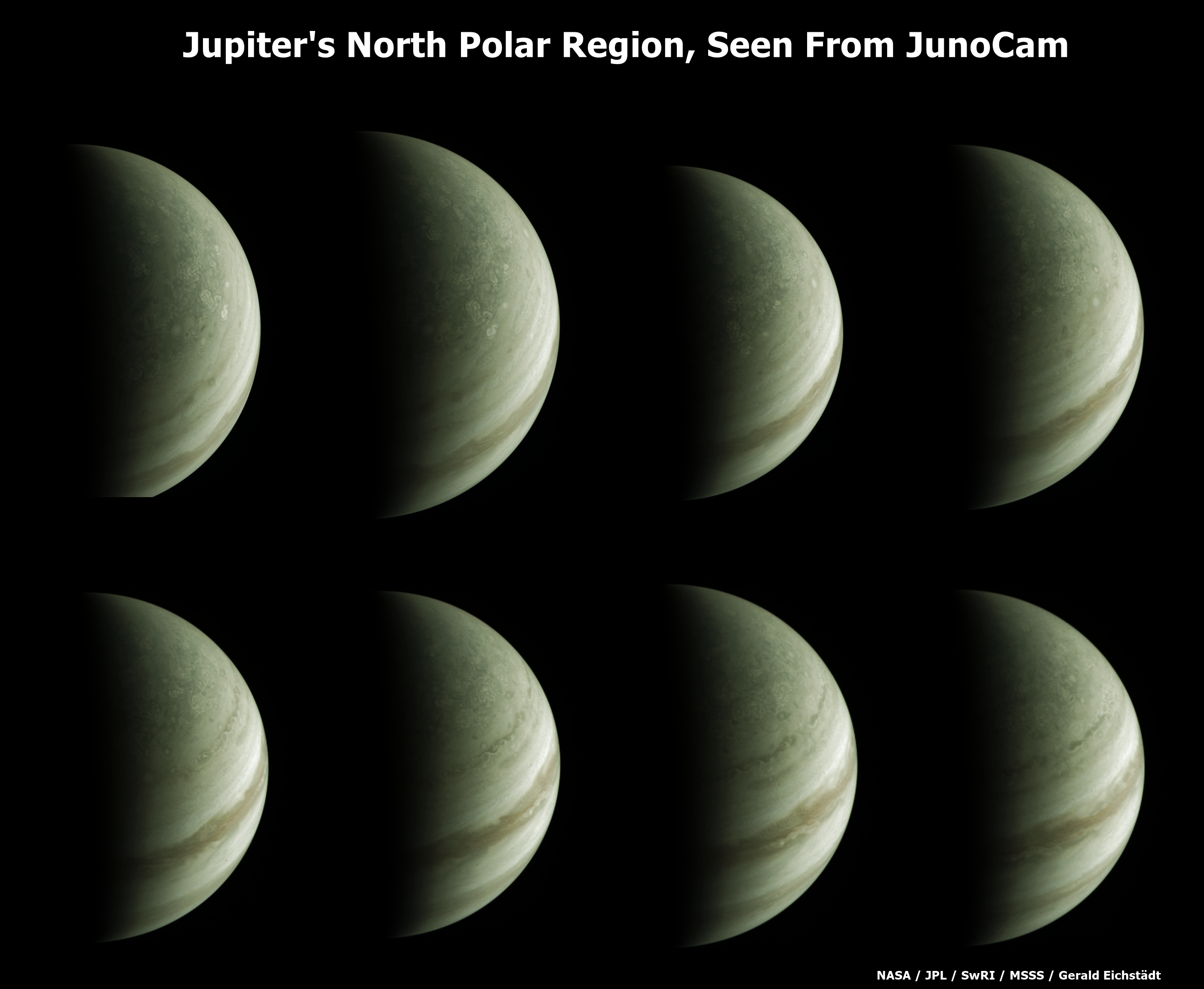 The JunoCam images are identified by a small spacecraft icon. You will see both raw and processed versions of the images as they become available. The JunoCam movie posts have too many images to post individually, so we are making them available for download in batches as zip files.