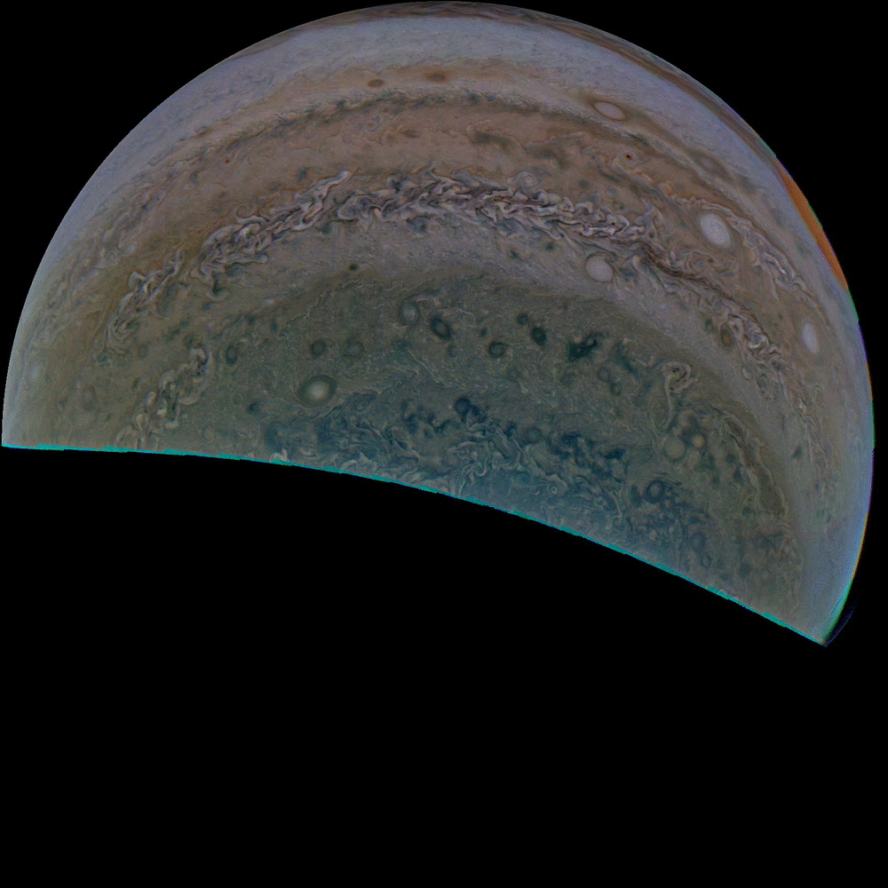 The JunoCam images are identified by a small spacecraft icon. You will see both raw and processed versions of the images as they become available. The JunoCam movie posts have too many images to post individually, so we are making them available for download in batches as zip files.