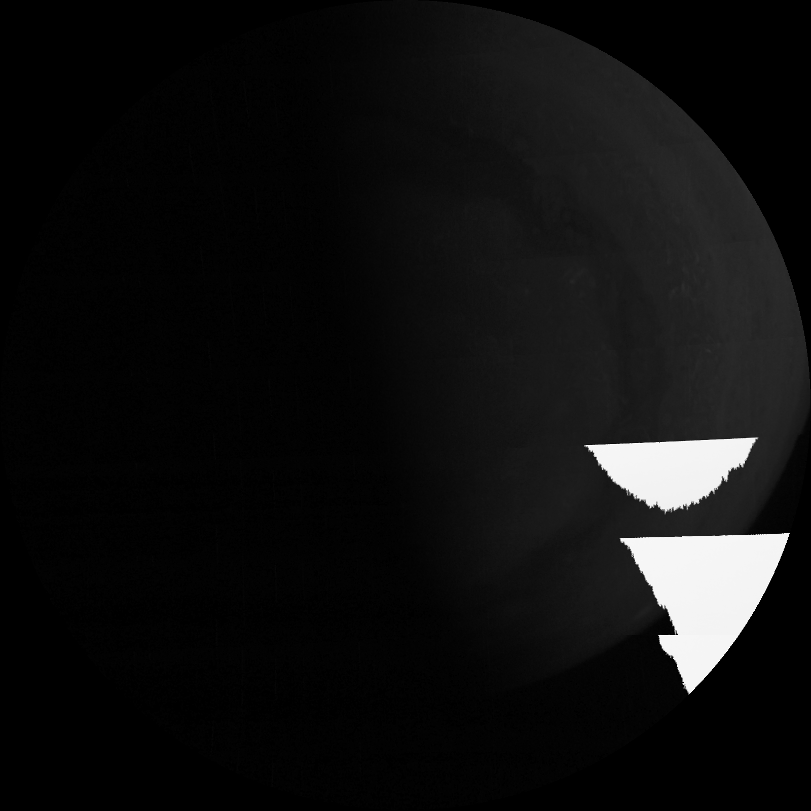 We have a methane filter, included for the polar science investigation, that is almost at the limits of our detector’s wavelength range. To get enough photons for an image we need to use a very long exposure. In some images this results in scattered light in the image. For science purposes we will simply crop out the portions of the image that include this artifact. Work is in progress to determine exactly what conditions cause stray light problems so that this can be minimized for future imaging.