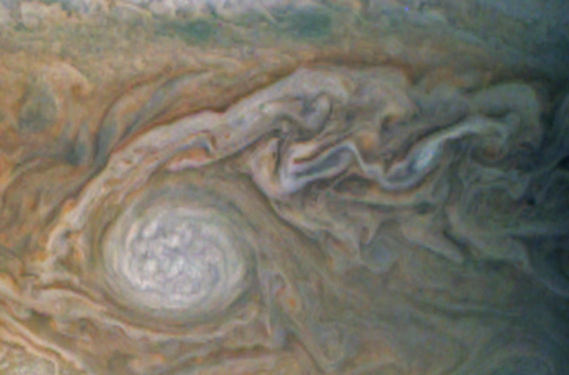 Giant anticyclonic storm Oval BA. Enlarged, sharpened and contrast enhanced.