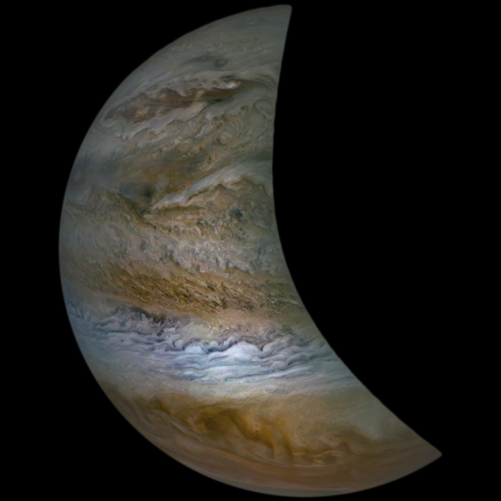A special note about the Earth Flyby mission phase images: these were acquired in 2013 when Juno flew past Earth. Examples of processed images are shown; most contributions are from amateurs.