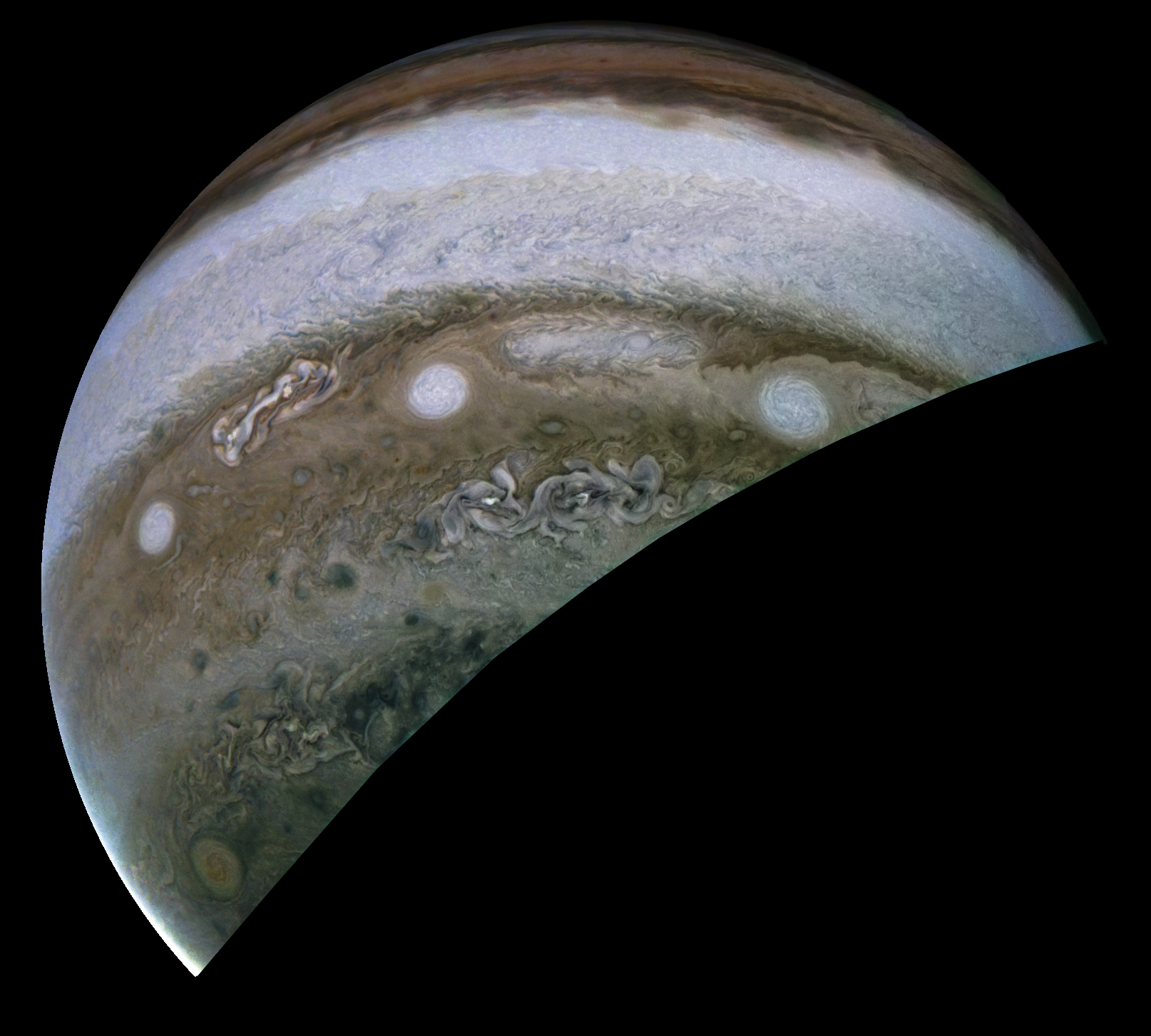 A special note about the Earth Flyby mission phase images: these were acquired in 2013 when Juno flew past Earth. Examples of processed images are shown; most contributions are from amateurs.