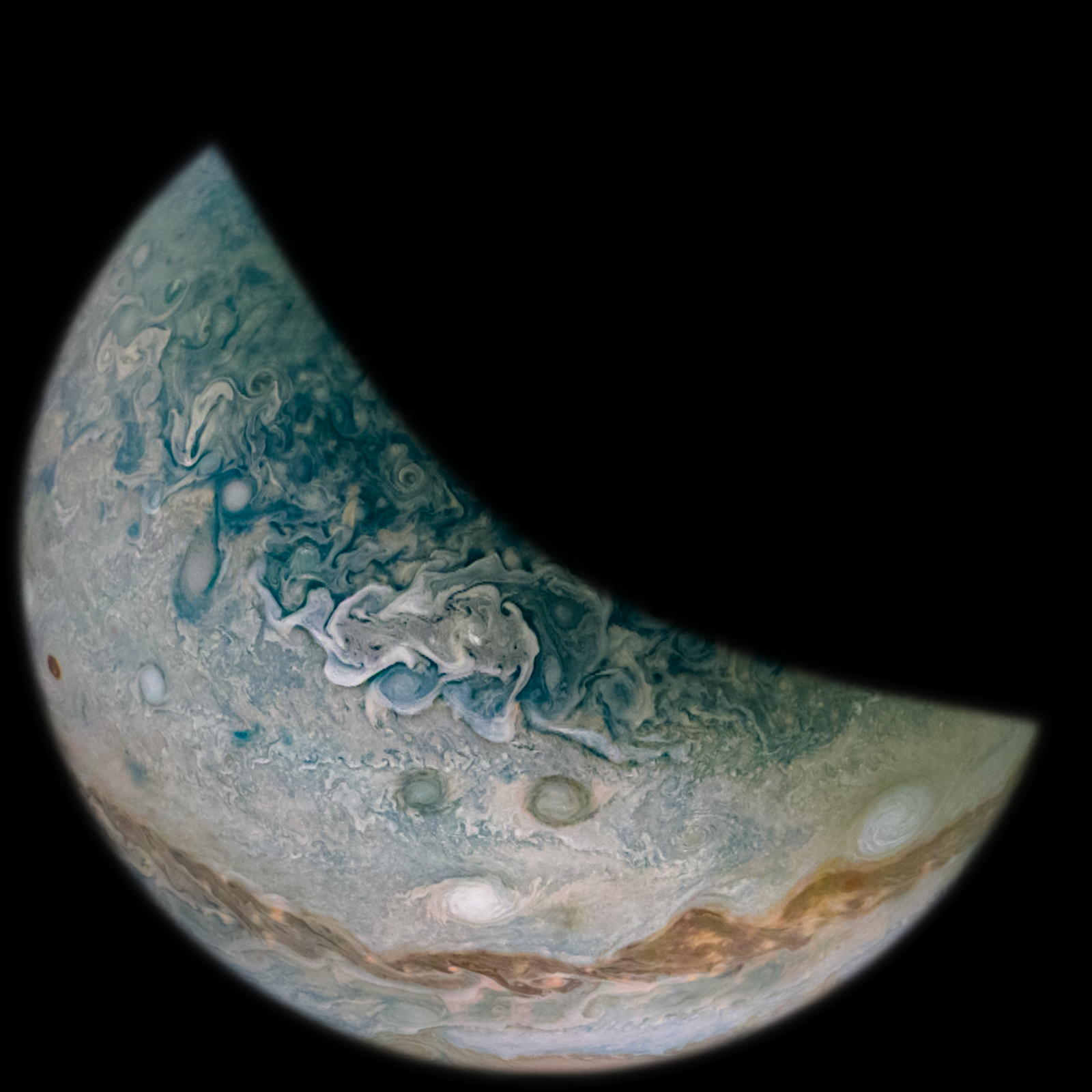 A special note about the Earth Flyby mission phase images: these were acquired in 2013 when Juno flew past Earth. Examples of processed images are shown; most contributions are from amateurs.