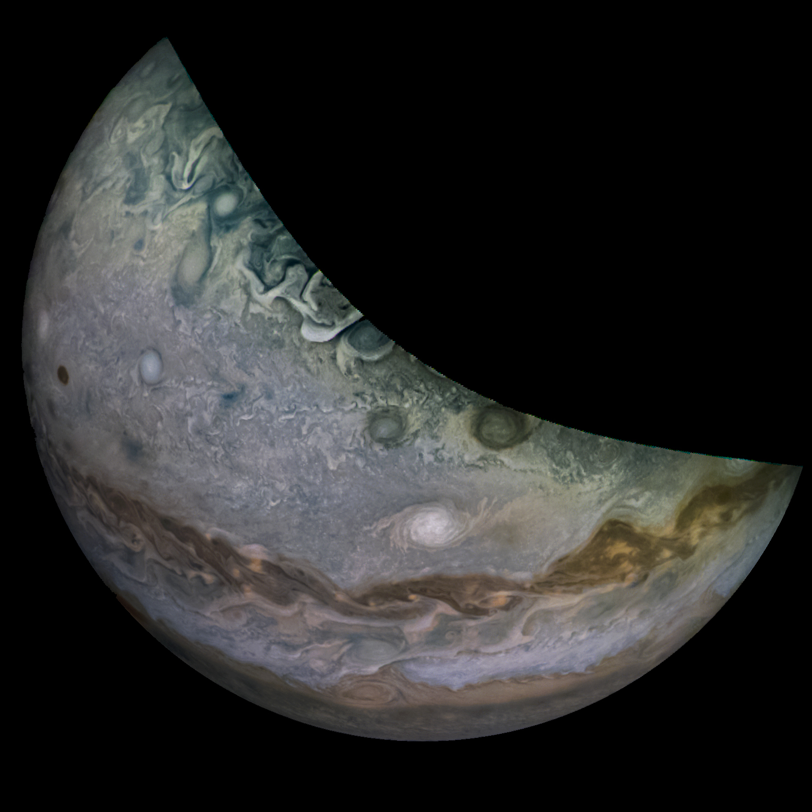 A special note about the Earth Flyby mission phase images: these were acquired in 2013 when Juno flew past Earth. Examples of processed images are shown; most contributions are from amateurs.
