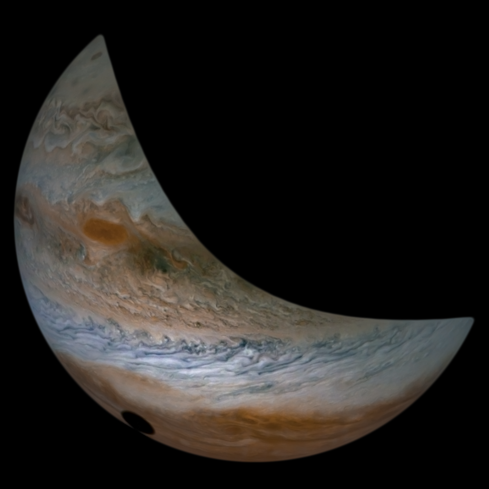 A special note about the Earth Flyby mission phase images: these were acquired in 2013 when Juno flew past Earth. Examples of processed images are shown; most contributions are from amateurs.