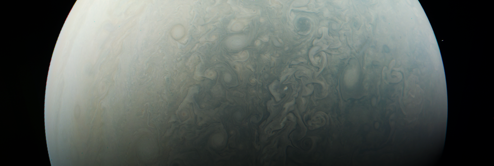 Junocam pixels are 12 bits deep from the camera but are converted to 8 bits inside the instrument using a lossless "companding" table, a process similar to gamma correction, to reduce their size. All Junocam products on the missionjuno website are in this 8-bit form as received on Earth. Scientific users interested in radiometric analysis should use the "RDR" data products archived with the Planetary Data System, which have been converted back to a linear 12-bit scale.
