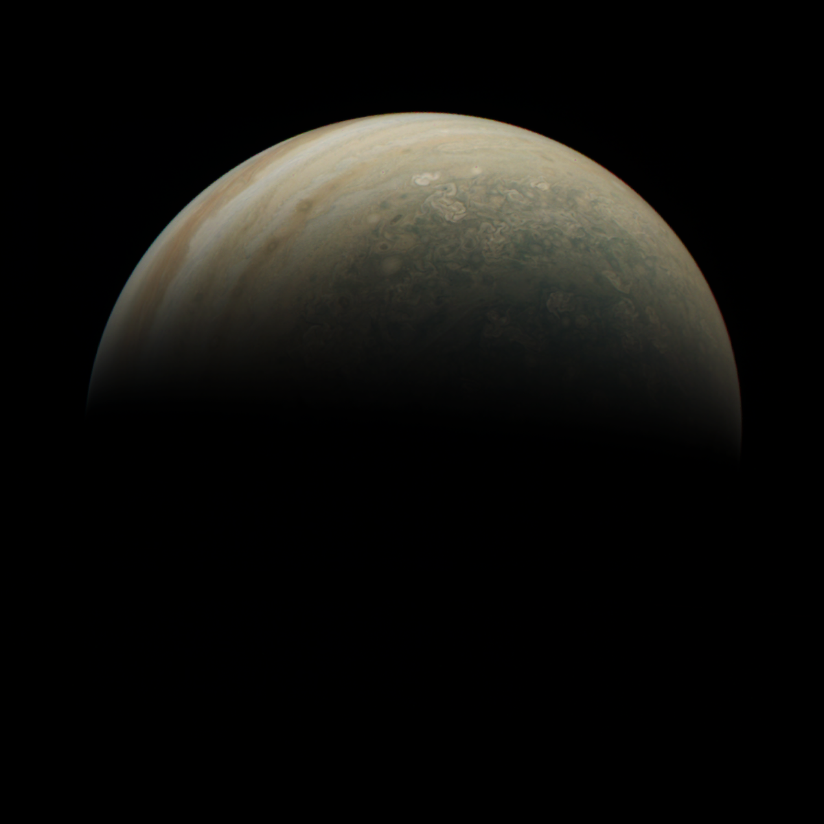 Junocam pixels are 12 bits deep from the camera but are converted to 8 bits inside the instrument using a lossless "companding" table, a process similar to gamma correction, to reduce their size. All Junocam products on the missionjuno website are in this 8-bit form as received on Earth. Scientific users interested in radiometric analysis should use the "RDR" data products archived with the Planetary Data System, which have been converted back to a linear 12-bit scale.