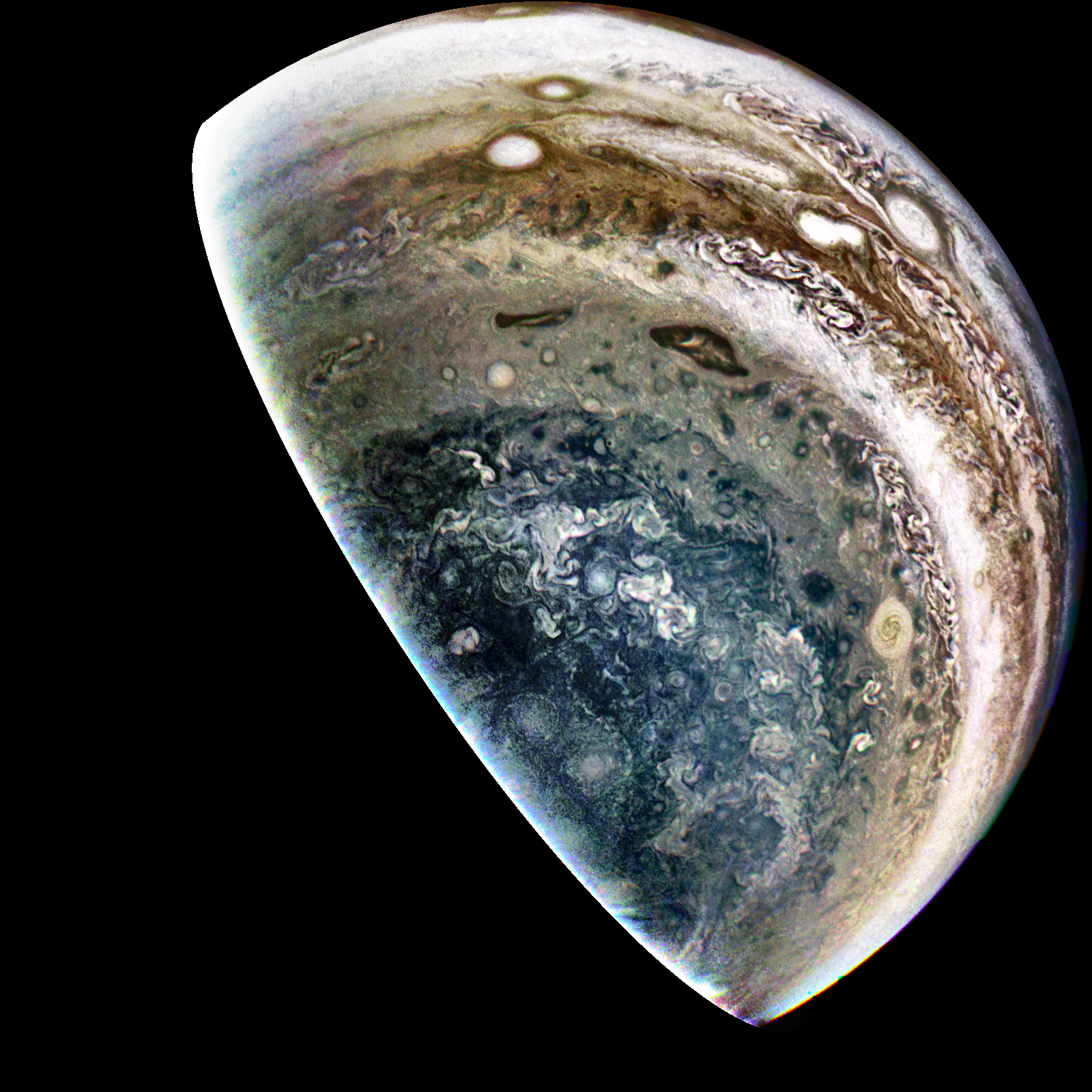 A special note about the Earth Flyby mission phase images: these were acquired in 2013 when Juno flew past Earth. Examples of processed images are shown; most contributions are from amateurs.