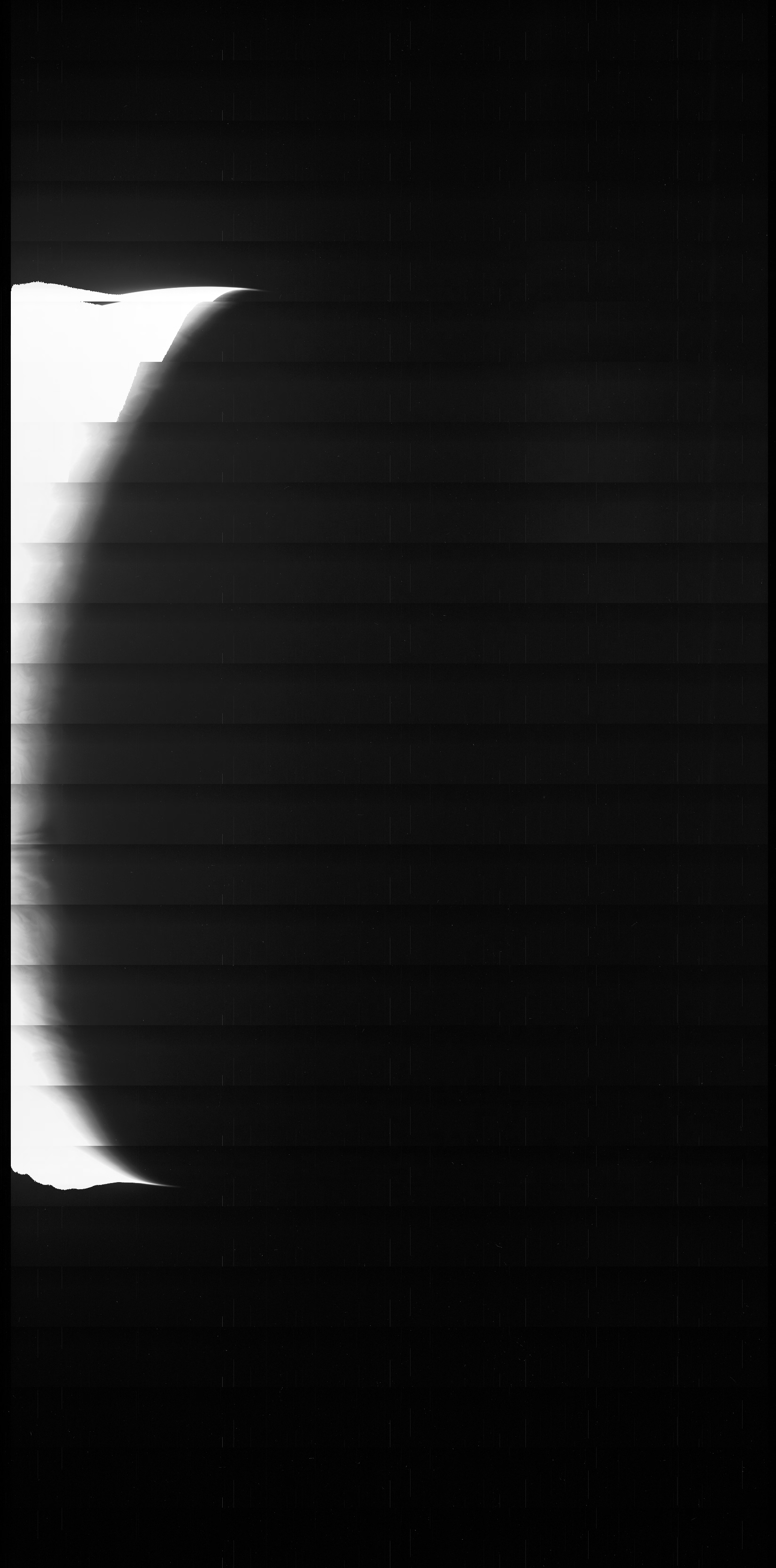 We have a methane filter, included for the polar science investigation, that is almost at the limits of our detector’s wavelength range. To get enough photons for an image we need to use a very long exposure. In some images this results in scattered light in the image. For science purposes we will simply crop out the portions of the image that include this artifact. Work is in progress to determine exactly what conditions cause stray light problems so that this can be minimized for future imaging.
