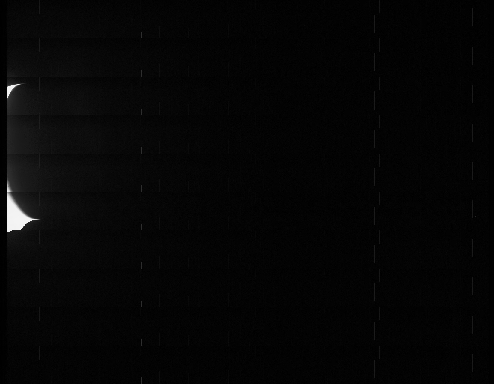 We have a methane filter, included for the polar science investigation, that is almost at the limits of our detector’s wavelength range. To get enough photons for an image we need to use a very long exposure. In some images this results in scattered light in the image. For science purposes we will simply crop out the portions of the image that include this artifact. Work is in progress to determine exactly what conditions cause stray light problems so that this can be minimized for future imaging.