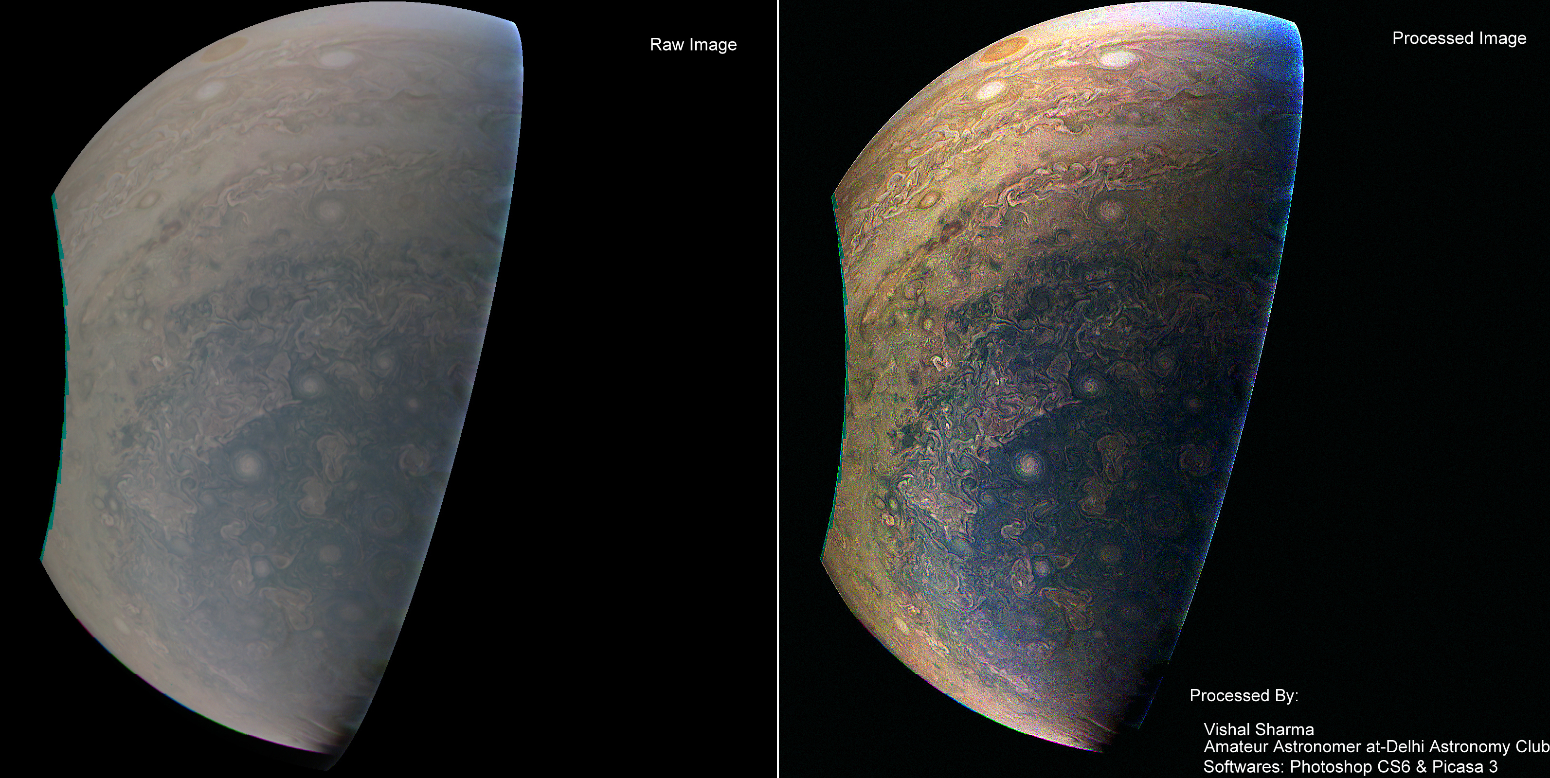 Credit : Taken by JunoCam & processed by : Vishal Sharma (Amateur Astronomer at Delhi Astronomy Club [DAC])