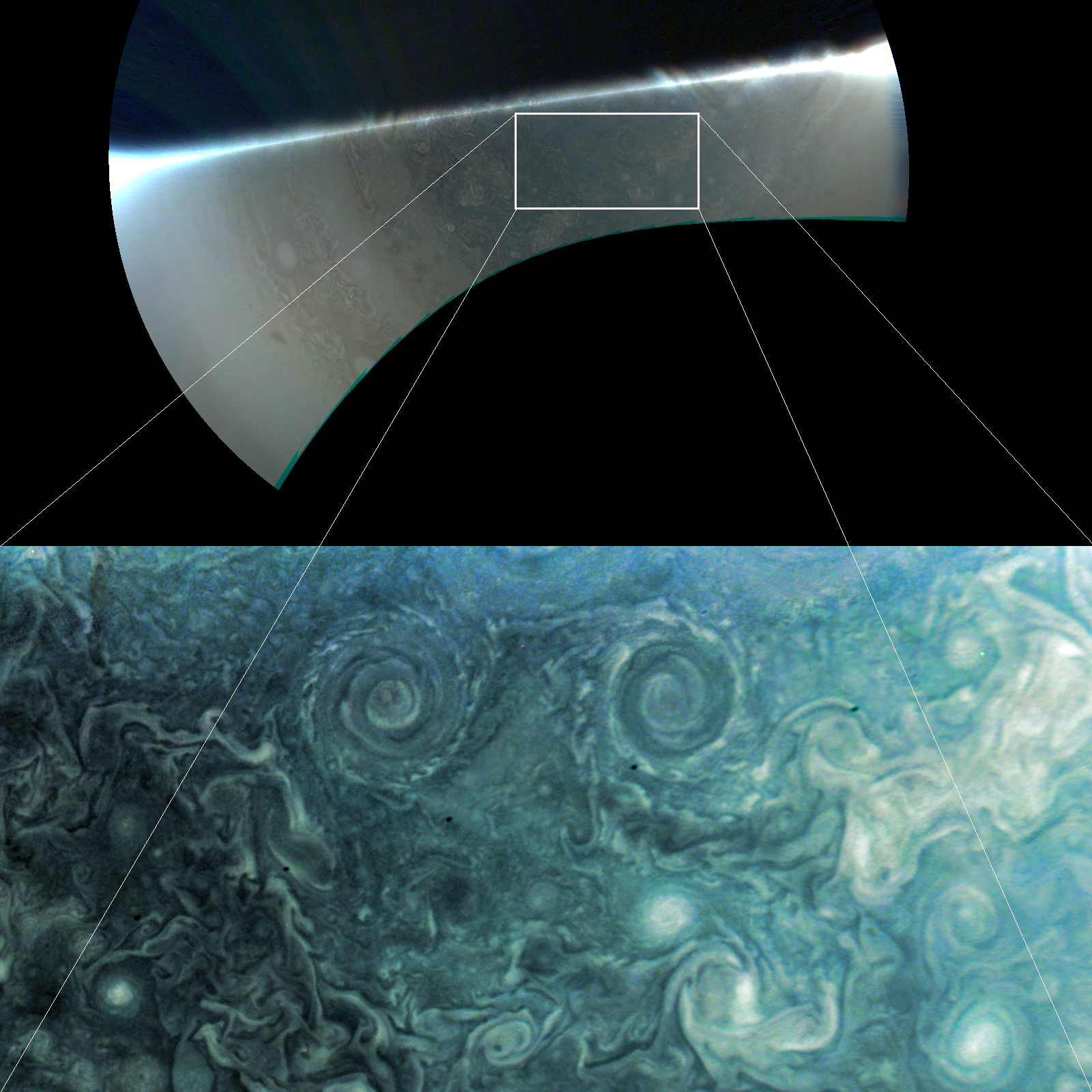 The JunoCam images are identified by a small spacecraft icon. You will see both raw and processed versions of the images as they become available. The JunoCam movie posts have too many images to post individually, so we are making them available for download in batches as zip files.