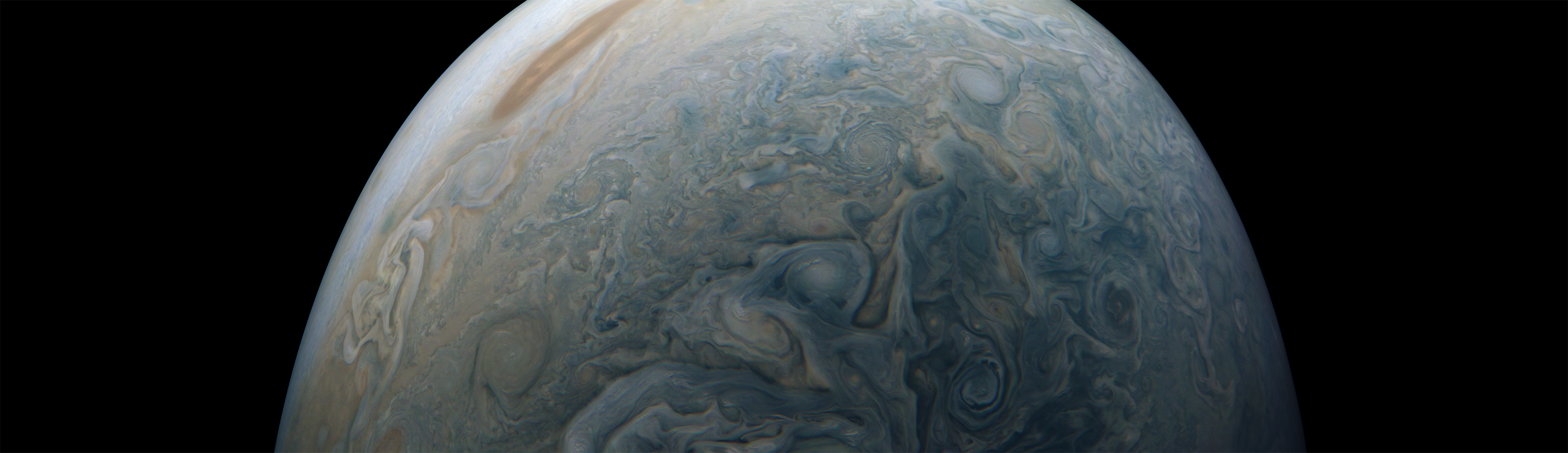 Citizen scientists Brian Swift and Seán Doran created this image using data from the spacecraft's JunoCam imager. The view has been rotated 90 degrees to the right from the original image.