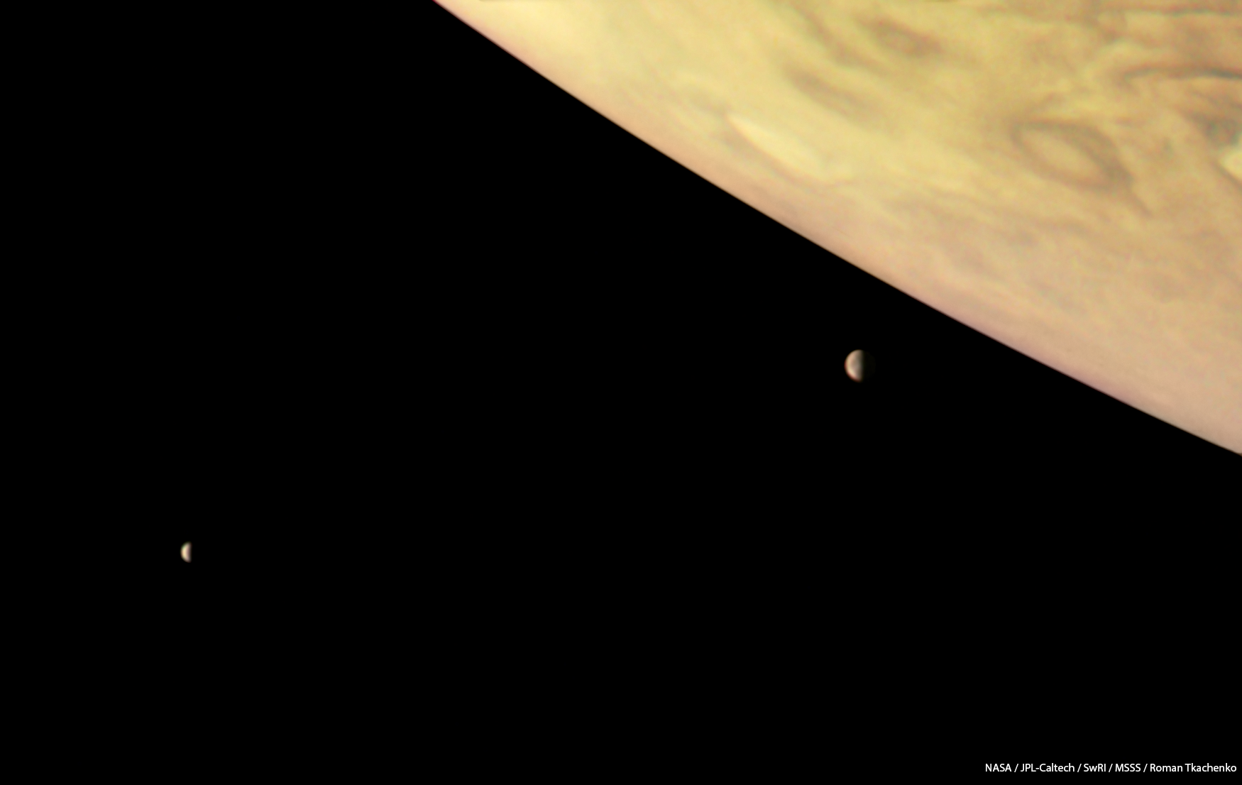moons – Io and Europa – was captured by NASA’s Juno spacecraft as it performed