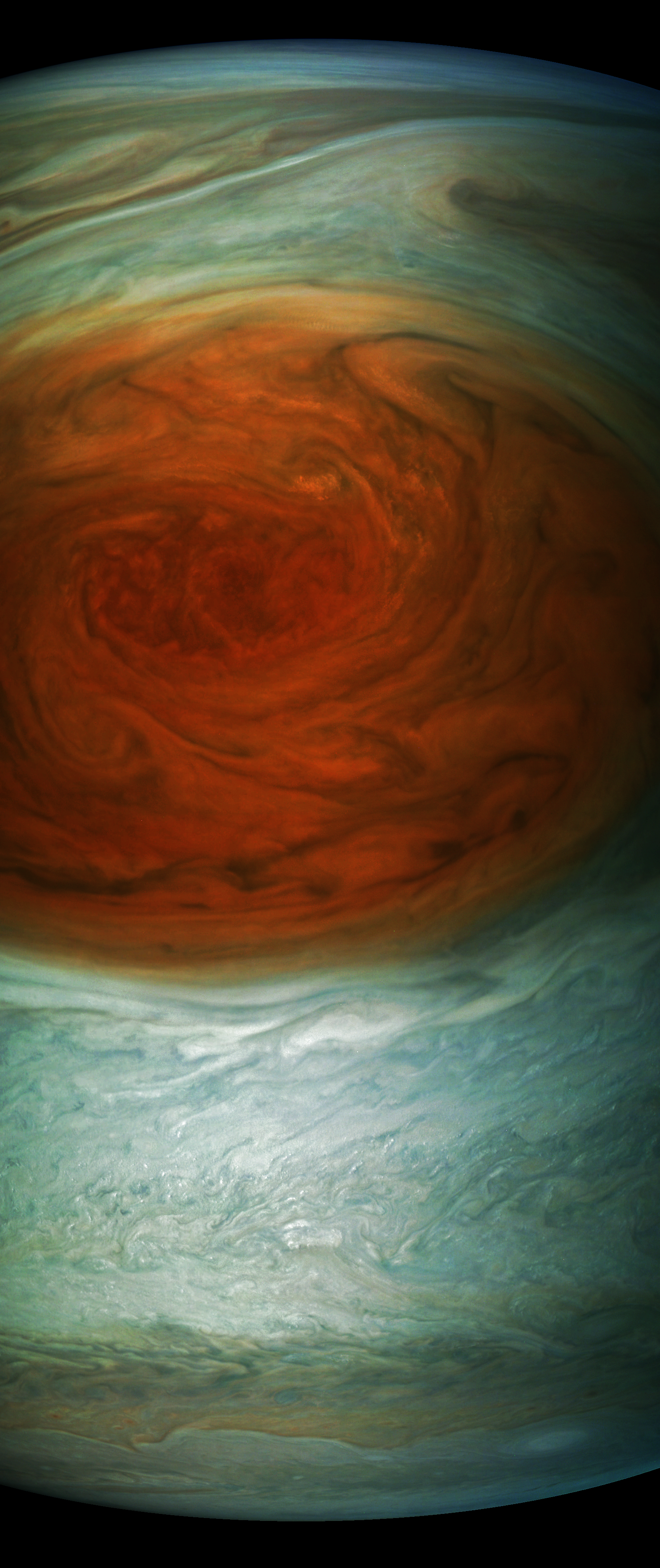 “For hundreds of years scientists have been observing, wondering and theorizing about Jupiter’s Great Red Spot,” said Scott Bolton, Juno principal investigator from the Southwest Research Institute in San Antonio. “Now we have the best pictures ever of this iconic storm. It will take us some time to analyze all the data from not only JunoCam, but Juno’s eight science instruments, to shed some new light on the past, present and future of the Great Red Spot.”